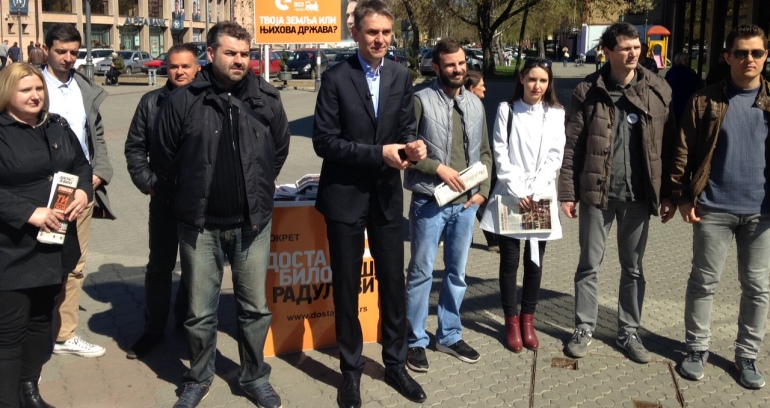 Он је, између осталог, казао да је у Србији на делу "потпуни распад система, у политику улазе неостварени људи с циљем да се обогате, док најпаметнија деца, која вредно раде, не могу да пронађу посао". "Боримо се против претварања Србије у земљу јефтине радне снаге, против тога да нам деца и унуци живе ван земље. Хоћу да ми се деца и унуци рађају у Србији. Ми смо лепа и богата земља, само је потребно да је уредимо и ослободимо неспособне власти. Ово је велика прилика за промену система", рекао је он.