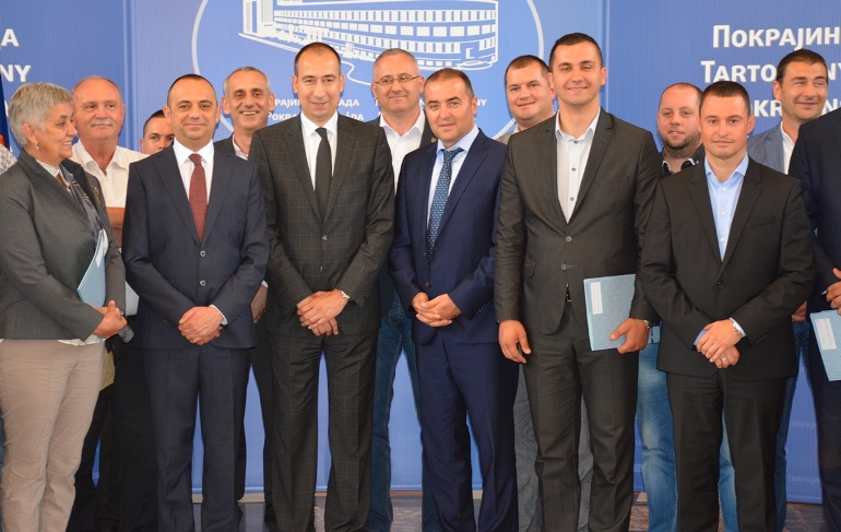 Потпредседник Покрајинске владе Ђорђе Милићевић и покрајински секретар за пољопривреду Вук Радојевић, уручили су данас уговоре председницима 40 локалних самоуправа у Војводини, које су оствариле право на бесповратна средства на конкурсу за уређење каналске мреже у функцији одводњавања пољопривредног земљишта.
