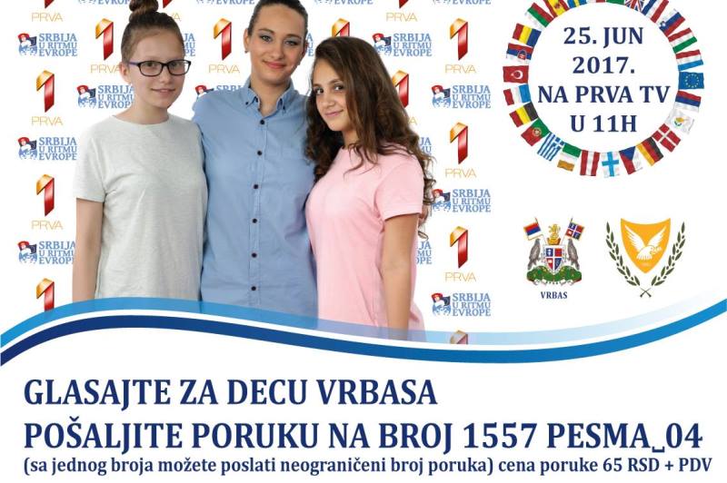 Марина Ераковић, Емилија Станојчић и Василиса Мирковић, ученице основних школа "Братство-јединство", "Светозар Милетић" и "Петар Петровић Његош", представљаће Врбас на овогодишњем завршном такмичењу "Србија у ритму Европе", које се 25. јуна одржава у Сомбору. Врбас пева за пријатељску Босну и Херцеговину, а наступ свих учесника моћи ће да се прати у директном преносу на Прва ТВ, са почетком у 11.00 часова.