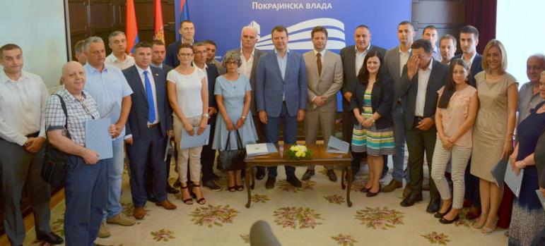 Председник Покрајинске владе Игор Мировић и директор Управе за капитална улагања АП Војводине Недељко Ковачевић уручили су данас уговоре представницима градова, општина, здравствених институција и институција социјалне заштите, које су оствариле право на бесповратна средства на јавним конкурсима Управе за капитална улагања АП Војводине.
