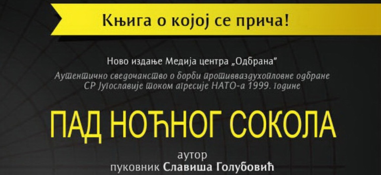 Општина Врбас организоваће у уторак, 07. новембра, промоцију књиге "Пад ноћног сокола", пуковника Славиша Голубовић. Ради се о књизи која је окарактерисана као најкомплетније сведочанство о обарању авиона Ф-117А и другим драматичним догађајима током НАТО бомбардовања. О књизи ће говорити њен аутор, један од командира у III ракетном дивизиону који је оборио непријатељски авион.