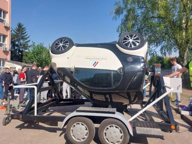 "Данас смо у склопу кампање ‘На матуру без аутомобила’ посетили средњу школу у Врбасу. Ученицима смо кроз предавање али и кроз демонстрације на симулаторима чеоног судара и превртања, указали на све опасности којим се излажу неодговорним понашањем, као и на улогу и значај сигурносног појасева. Жеља нам је да младим људима на практичним примерима покажемо колико је појас важан и како може да предупреди последице саобраћајних незгода. Употреба сигурносних појасева представља јако важан сегмент у безбедности саобраћаја, на предњим седиштима смањује смртност за 50 посто, на задњим 25 посто. Такође, има велики утицај на редукцију тешких телесних повреда као и оних са смртним исходом, док настајање лаких повреда умањује за 20 до 30 одсто. Када се исправно користи сигурносни појас спречава контакт возача и путника унутар возила, такође спречава и испадање из возила. Често се дешава да, од силине ударца при удесу, особа која није везана испадне из возила, што најчешће води ка смртном исходу. Још једна важна функција појаса је да равномерно распоређује енергију удара по целом телу, што је битно јер су силе које тад делују јако велике. Иако је сигурносни појас уведен у употребу давних 60-их година прошлог века, до данас није осмишљен једноставнији, а учинковитији систем пасивне заштите возача и путника унутар возила. Бројна истраживања потврђују да је сигурносни појас и данас најбољи вид заштите", објаснио је Мирко Коковић из Агенције за безбедност саобраћаја. Према његовим речима, проценат употребе сигурносних појасева у Републици Србији, по подацима из 2021. године, је 86 посто за возаче и сувозаче, док путници на задњој клупи појас користе тек у 19 одсто случајева.