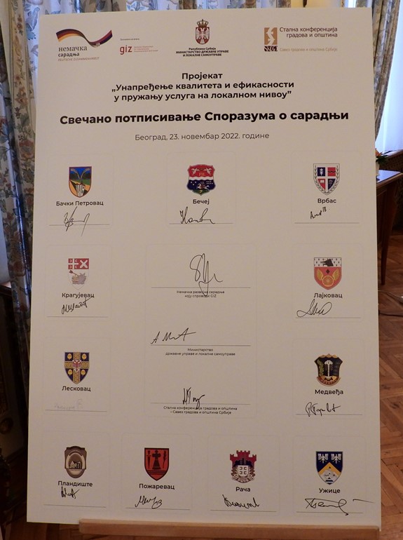 Министар државне управе и локалне самоуправе др Александар Мартиновић присуствовао је данас свечаном потписивању споразума о сарадњи са 11 јединица локалне самоуправе, у склопу активности „Унапређење квалитета и ефикасности у пружању услуга на локалном нивоу“, коју Стална конференција градова и општина (СКГО) спроводи у оквиру пројекта немачко-српске развојне сарадње „Подршка реформи јавне управе у Републици Србији у процесу приступања Европској унији“, уз подршку Немачке организације за међународну сарадњу (ГИЗ). Једна од 11 локалних самоуправа која је потписала овај споразум је и општина Врбас.