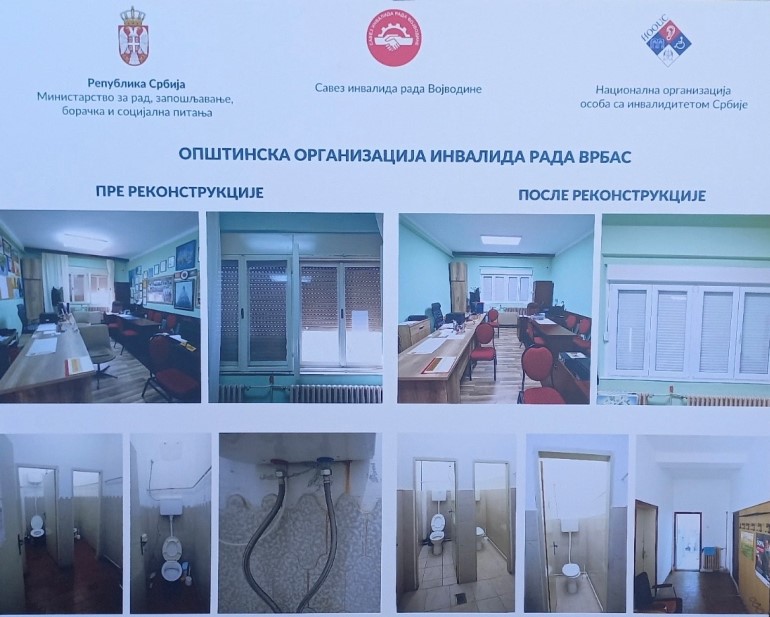 Селаковић је навео да је само у адаптацију просторија у Врбасу, њихово уређење и сређивање мокрих чворова, уложено нешто више од два милиона динара, саопштило је ресорно министарство. "Савез се обратио Министарству са предлогом и пројектом за помоћ у реновирању просторија коју користе општинске организације, односно градске организације Савеза инвалида рада у Панчеву, Бачкој Паланци и Врбасу, за шта је Министарство издвојило 9.447.000 динара. За просторије које користи Општинска организација инвалида рада у Врбасу издвојено је 2.086.000 динара. Ова значајна организација броји више од 450 активних чланова и циљ је да се омогуће што бољи и хуманији услови за рад и деловање свих чланова", рекао је Селаковић.