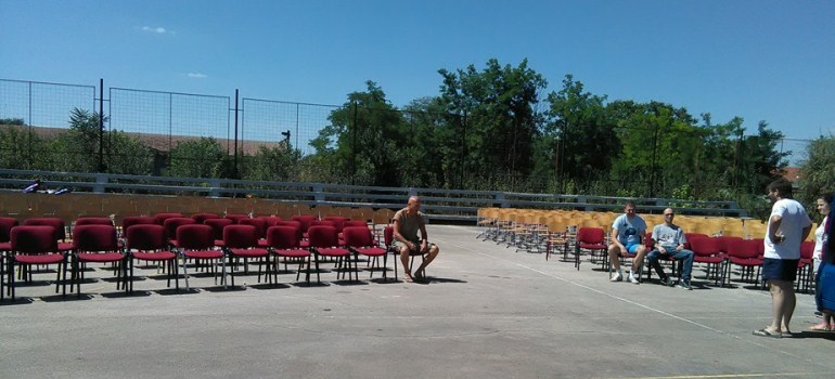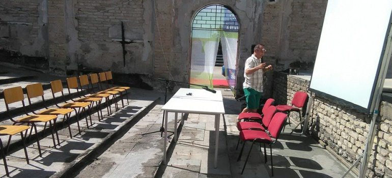 Импровизовани летњи биоскоп био је "подигнут" на спортском терену крај остатака изгорелог објекта.