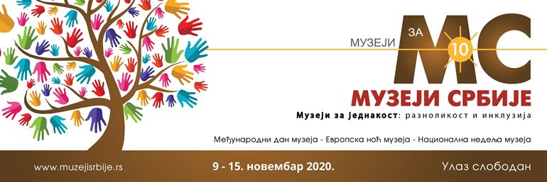 Манифестација Музеји за 10, која се организује поводом Међународног дана музеја и Европске ноћи музеја, овог пута одржава се средином новембра, уз обавезно поштовање свих мера у борби против епидемије COVID 19. Улаз на све догађаје је слободан, али ће обим и начин њиховог одржавања зависити и од епидемиолошке ситуације.