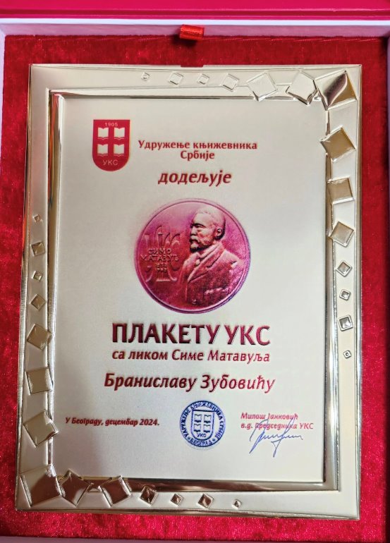 Удружење књижевника Србије, на седници Управног одбора, водећи се критеријумима о континуираном, запаженом и свеобухватном раду, као и књижевном доприносу својих чланова, донело је одлуку о највишим статутарним признањима УКС за 2024. годину. Један од овогодишњих лауреата и песник Бранислав Зубовић, библиотекар у ЈБ "Данило Киш" и главни уредник часописа Траг.