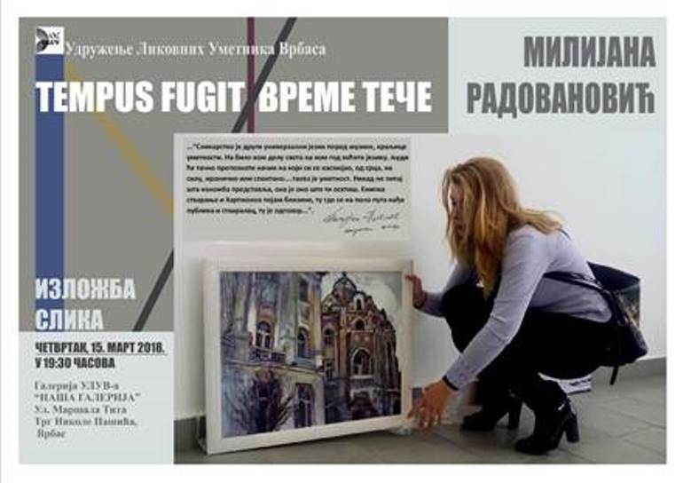 У Галерији Удружења ликовних уметника Врбаса у четвртак, 15. марта у 19.30 часова, биће отворена изложба слика "Време које тече", академске сликарке Милијане Радовановић.