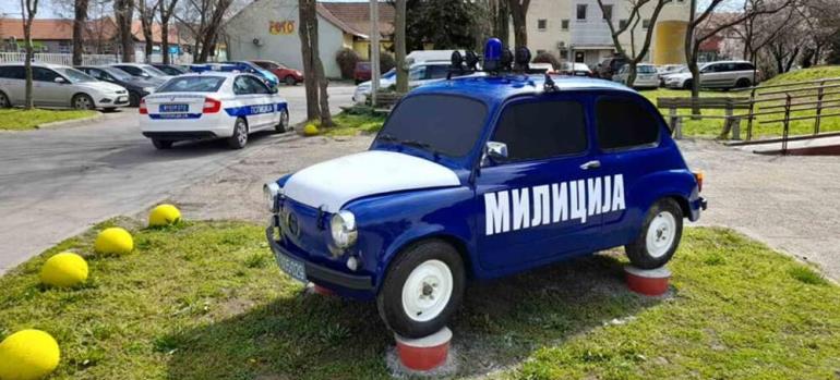 Двориште полицијске станице у Врбасу је украшено рестаурираном полицијском "фићом", пренео је портал Kurir.