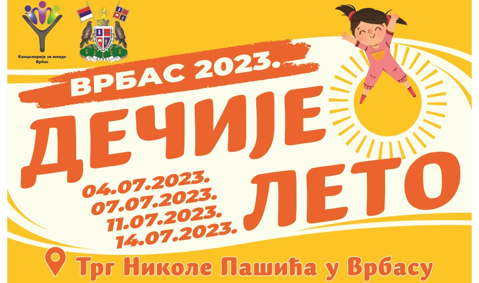 Општина Врбас и Канцеларија за младе организују у току прве две недеље јула, од 04. до 14. јула, четвородневни забавни и едукативни програм под називом "Дечије лето 2023".