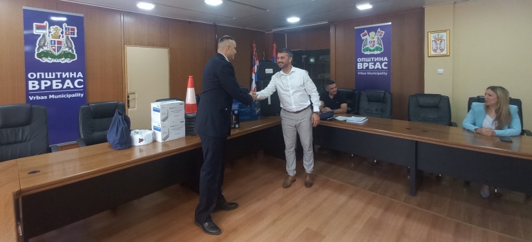 Општина Врбас донирала је данас Полицијској станици Врбас пола милиона динара вредну опрему за вршење увиђаја након саобраћајних незгода и опрему за контролу возача. Дејану Дробњаку, мајору полиције и наченику ПС Врбас, опрему је уручио Предраг Ројевић, председник општине Врбас. Претходни слични пројекти већ су донели резултате и број саобраћајних незгода већ сада значајно је мањи, речено је прилоком сусрета. Примопредаји су присуствовали и чланови Савета за координацију послова безбедности саобраћаја на подручју локалне самоуправе Врбас и полицијски службеници ПС.